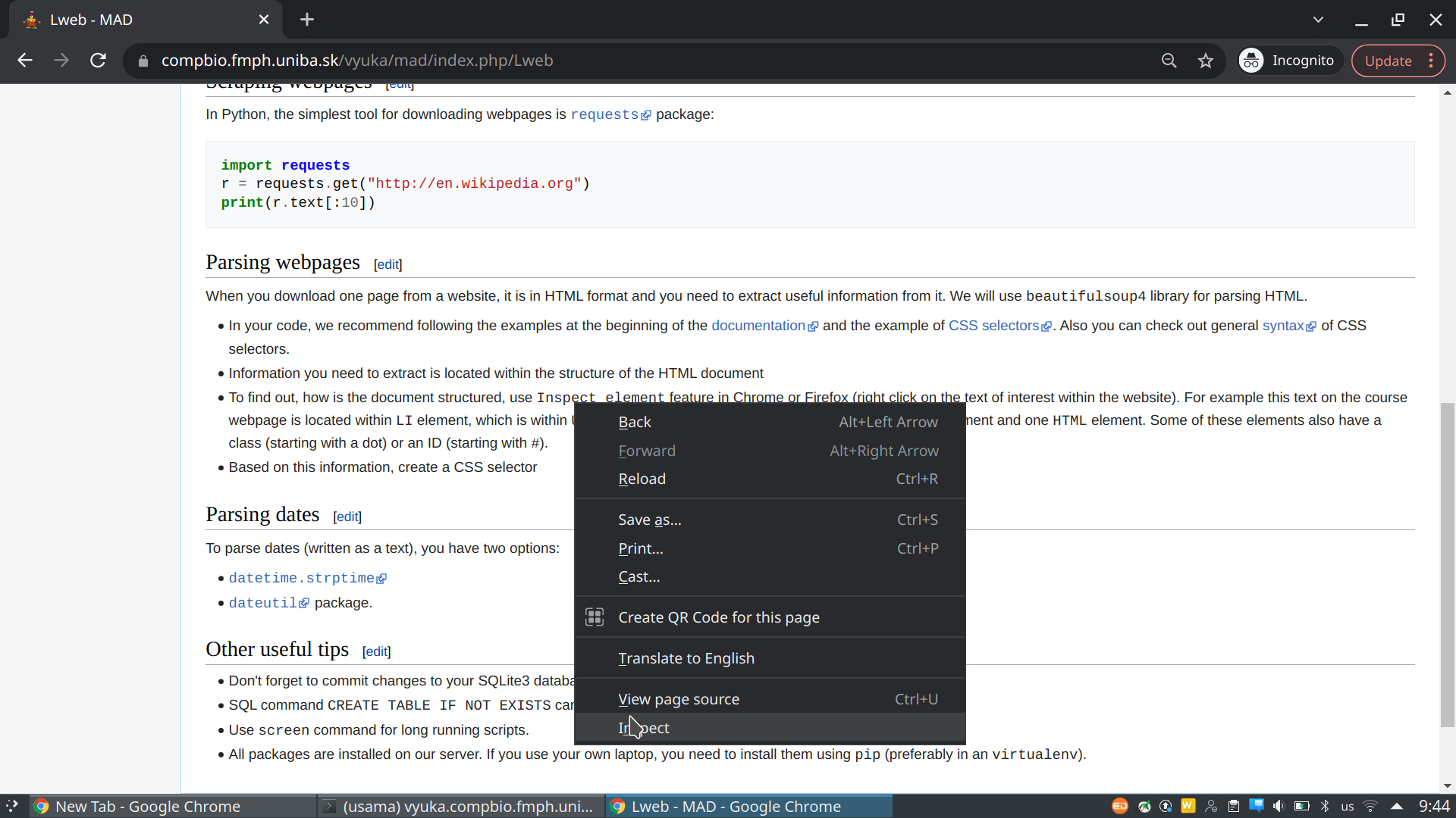 In this lecture, we will extract information from such a website using Python and existing Python libraries. We will store the results in an SQLite database. These results will be analyzed further in the following lectures.
